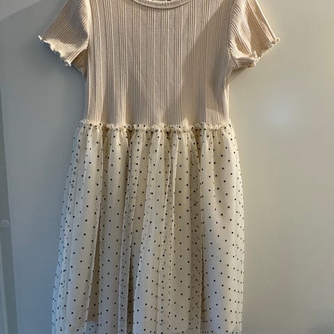 Kjempefin kjole fra Zara. Størrelse 110, men Zara har litt små størrelser. Vi har brukt denne kjolen fra størrelse 104 og til 110 ble for lite. Ingen bruksmerker bortsett fra noen nupper på ermene.