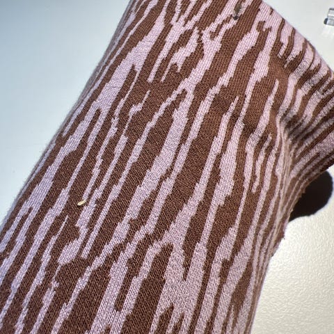 Stoffet har opplegg i begge ender, ment å brukes som gardin, men ble aldri brukt