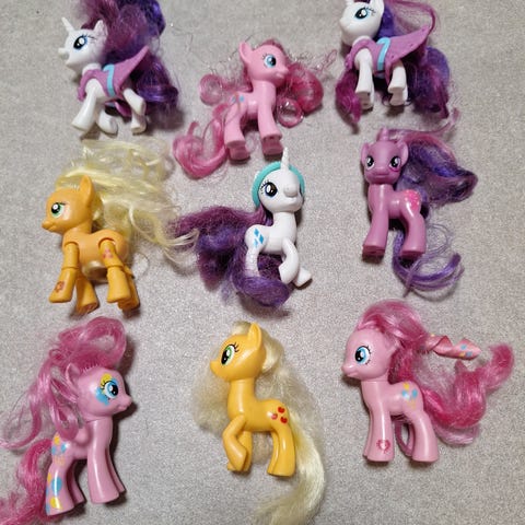15 stk My Little Pony samling bestående av flere små figurer i ulike farger og design. Figurenes størrelse varierer, og de er laget av plastmateriale. Passer for barn og samlere. Fra 4-9cm