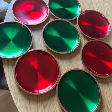 Odel Norway kobber dekketallerken ,ø 17 cm med emalje i rødt og grønt x8 Odel