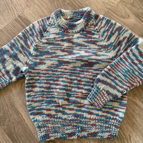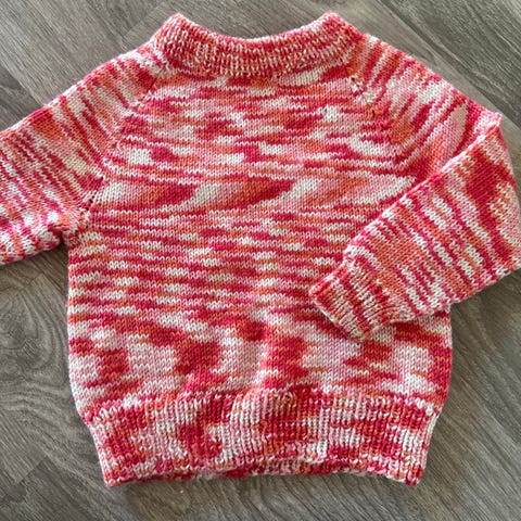 Myk og varm strikkegenser i rosa og hvit melert farge.