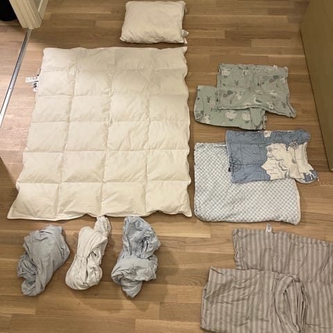 Dyne, pute og 2 sengetrekk i 100x140 cm