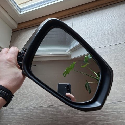 Nedre del av speilhuset er sprukket, men går ikke utover funksjonalitet.