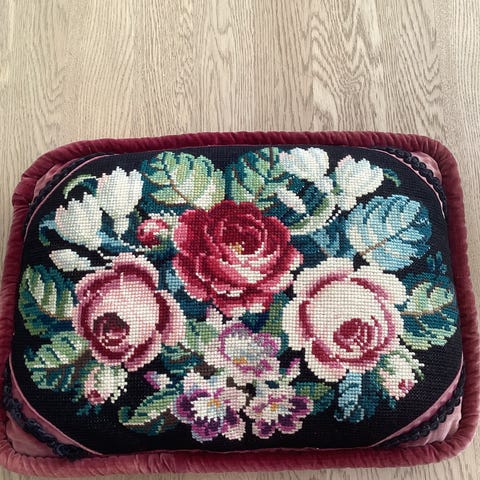 Kjempefint putetrekk i velour med gullfrynser.