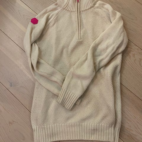 Kremhvit med orange detaljer Zip ullgenser fra Bjørn Dæhlie 50% ull og 50% akryl. Kan vaskes i 30 grader