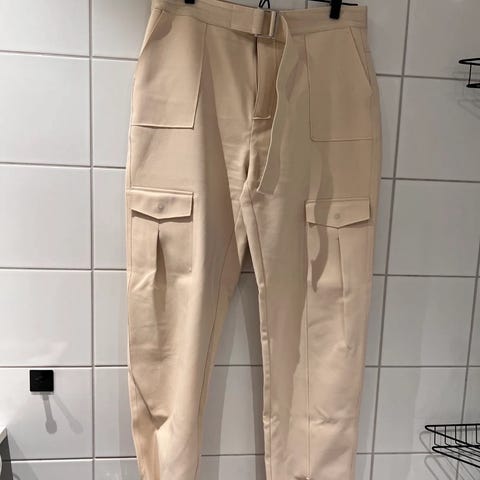 Selger denne fine hvite baggy buksen fra holzweiler da den blir brukt for lite. Størrelse S, men vil si den passer alt fra xs-m da den har knyting i livet og er lang og strechy!💛💛Den har et teksturert mønster, og den er utrolig behagelig på.