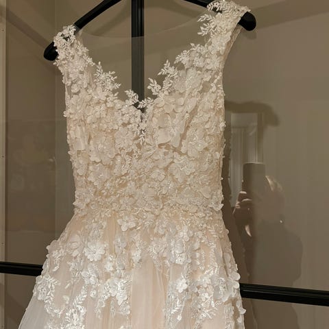 Selger min nydelige brudekjole fra Tiffany’s, Napier ivory! Nydelige detaljer med 3D-blomster og perler.