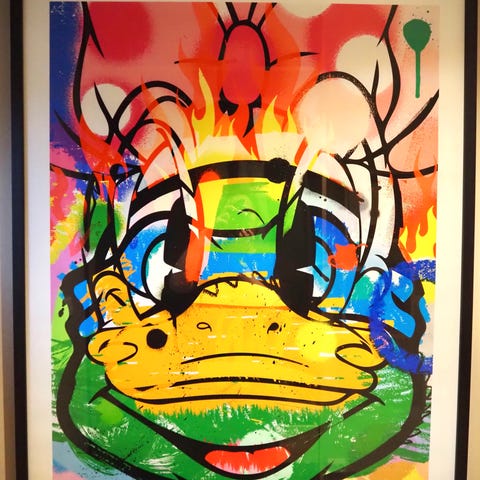 Inkludert ramme med UV-glass. Har hengt på en vegg som ikke har sollys.