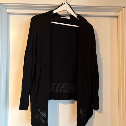 Finstrikket cardigan/jakke i merino. Pent brukt.