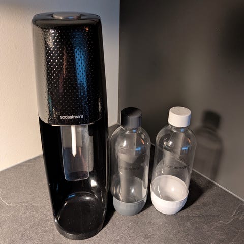 Ei flaske følger med. Fungerer fint, sjølv om etiketten antyder at den er"utløpt".