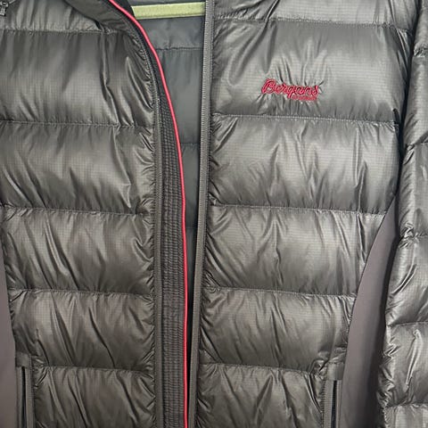 Bergans vinterjakke i størrelse M, farge svart. Jakken har en polstret design med hette, glidelåslommer og glidelås foran. Egnet for utendørs bruk i kaldt vær.