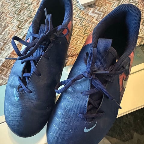 Skoene har litt bruksmerker, men de er så vidt brukt. Kjøpte de til datteren min når hun starta på fotball. Hun var på fem treninger så ga hun seg.