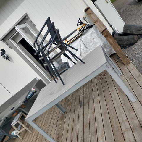 Glassbord + 4 stoler gis bort