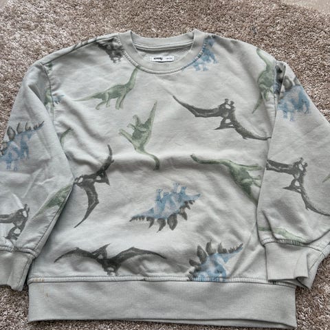 H&M barnegenser i størrelse 110, unisex modell med flerfarget mønster. Genseren har et motiv med små dyr i ulike farger på lys grå bakgrunn. Passer for barn og er laget i et mykt materiale egnet for barneklær.
