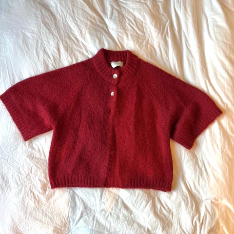 Neo Noir Cardigan i hvit farge, størrelse S. Strikket materiale med glidelås foran og en bred krage. Designet for kvinner, egnet som et lagplagg til hverdagsbruk.