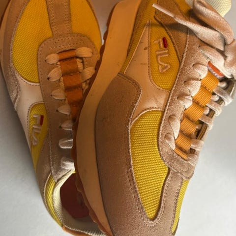 Fila Sneakers joggesko i størrelse 38. Skoene har en kombinasjon av hvit og rosa farge. Egnet for hverdagsbruk. Lappen inni er vekke pga det var limt navnelapp over, men er ganske sikker på at det er str 38