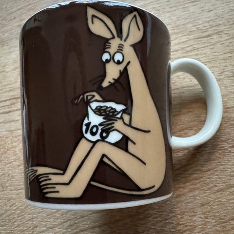 Arabia Mummikopp 3dl «Brun Sniff» kun produsert i perioden 2002-2008 med etikett selges.