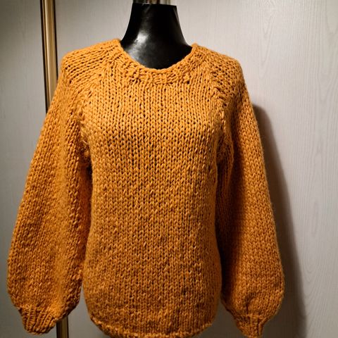 Meget pent brukt hjemmestrikket genser. Litt innsvingt i liv og stor hals ala vannfall . Strikket i dobbelt superwash ullgarn. Str S. Hbo 340 kr