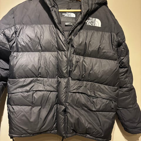 The North Face Vinterjakke i størrelse M for kvinner, farge grå. Jakken er laget for vinterbruk med isolerende egenskaper, designet for å gi varme og komfort i kalde forhold.