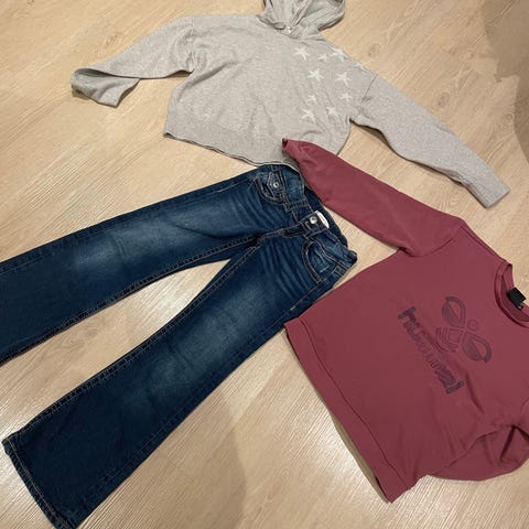 Liten klespakke i str 134/140. T-skjorte, bukse og jumpsuit.