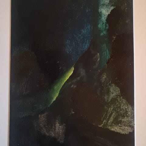 Selger et vakkert og stemningsfullt maleri i original olje på lerret. Motivet viser et gammelt rom med varme fargetoner, lysinnfall fra vinduet og en gitar som ligger på gulvet – et motiv som gir både nostalgi og ro.