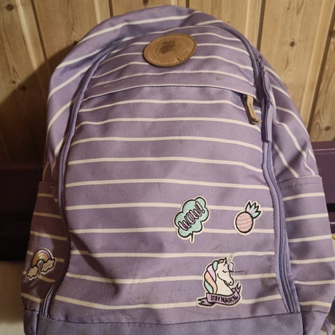Skolesekk fra Beckmann. Brukt fra 1. klasse. Litt slitt i trekket og selene, men fortsatt mye bruk igjen. Alle spenner og reimer er i orden. Lyset i fronten fungerer ikke, men mulig det bare er å bytte batteri. Nyvasket sekk.