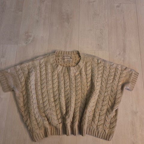 Barfota genser onesize med stjernemotiv med gull detaljer på bryst og ringer på albuene. Er i 100% mohair. Lenger bak enn foran.