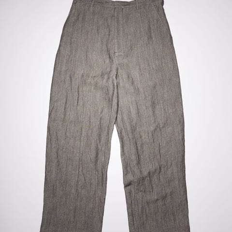 Laget av en blanding av lin, viskose, ull og andre materialer. Passer godt til både formelle og uformelle anledninger. Nye linbukser fra Acne starter prismessig på et sted mellom 4500-5000 kr.