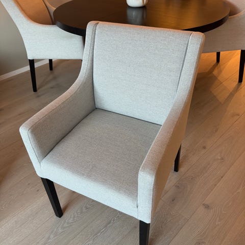 7 lekre Madison-spisestoler fra SixBondStreet selges. Fargen heter Gargoyle og er en varm grå farge.