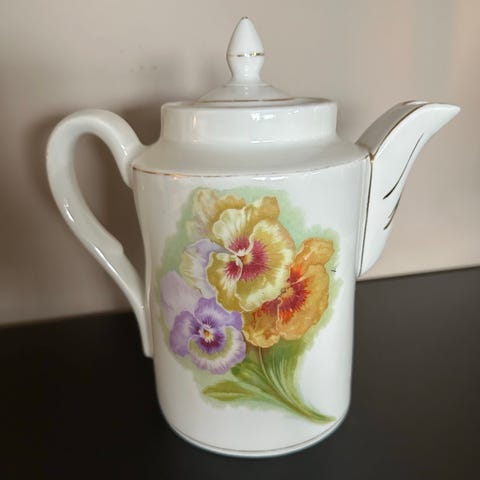 Vakker, håndmalt tekanne i meget pen stand fra Duchess i porselen. Høyde ca. 13 cm. Fastpris kr. 110,-.