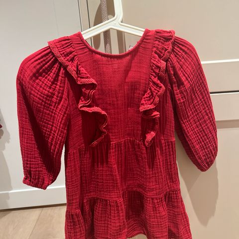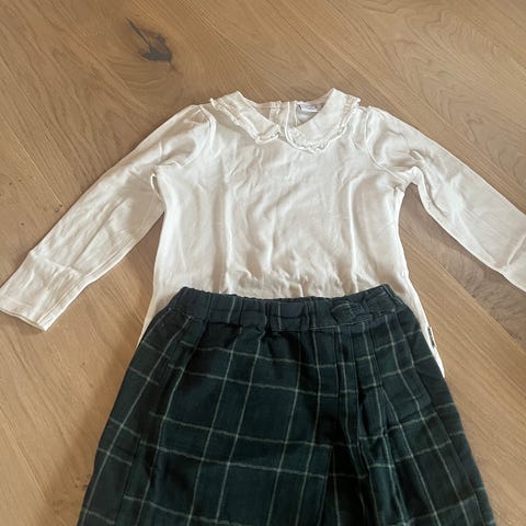Albababy kjole ubrukt str 104. Hjemmestrikket kjole, 2 gensere (den ene er str 140, men liten I størrelsen, så tilsvarer 104/110).