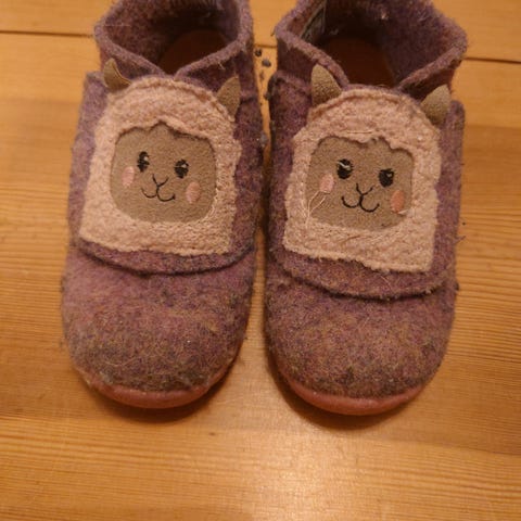 Superfit barn tøfler i størrelse 21, laget av ullmateriale. Tøflene er rosa og designet for unisex bruk. De har en myk såle som passer til innendørs bruk.