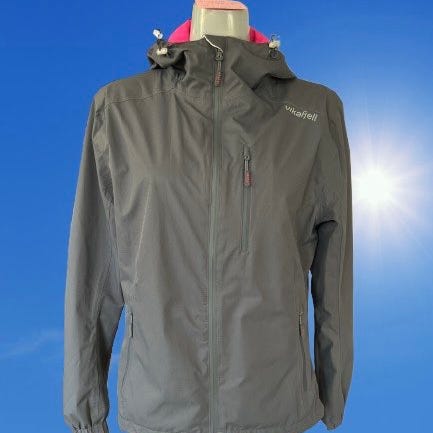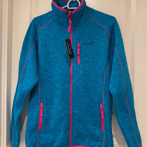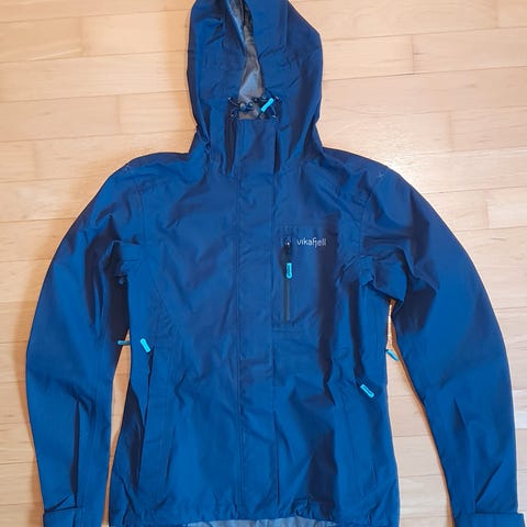 Vikafjell Annet dunjakke for dame i størrelse S. Jakken er marineblå og har glidelås foran med to sidelommer og en brystlomme. Materialet er lett og isolerende, egnet for utendørs bruk i kjøligere vær. Jakken har elastiske mansjetter og en høy krage for ekstra beskyttelse mot vind