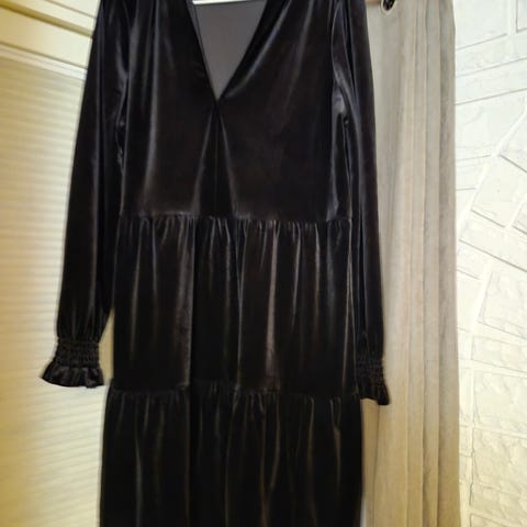 Selger min lite brukte svarte velurrkjole med gull prikker fra Va vite. Kjøper betaler frakt