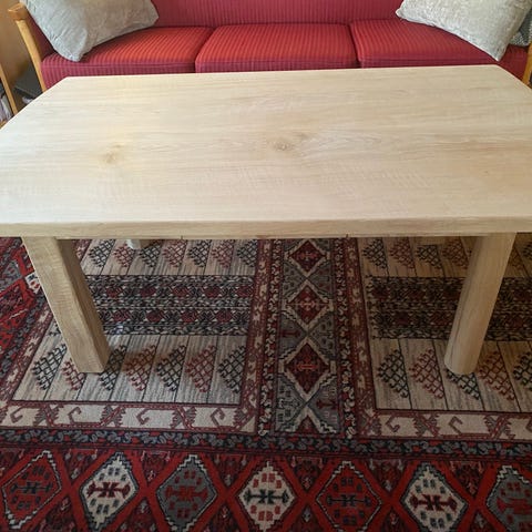 2 stk eikebord selges. 8000,- kr pr stk. Hver av bordene består av en stor gjennomskåret treplate, såkalt "live edge" De er avrettet, og pusset på begge sider. Uten kvist. Begge bordene er skåret ut fra samme stokk. Har vært tørket i 6 år. Lengden på begge er ca 190 cm, bredden ca 70 cm på det smaleste, 82 på det bredeste. Tykkelsen er ca 50 mm. Utførte slipingen sommeren 2025, har siden vært lagret kaldt på verkstedet. Selges uten bein. Har ennå ikke oljet eller lakket disse bordene. Kan ved forespørsel fikse dette, mot betaling. Egner seg fint som salongbord, eksempelvis.