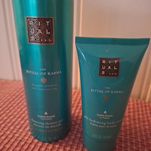 Rituals The Ritual of Karma hudpleiesett; hydrating body cream, body scrub og shower gel mousse.