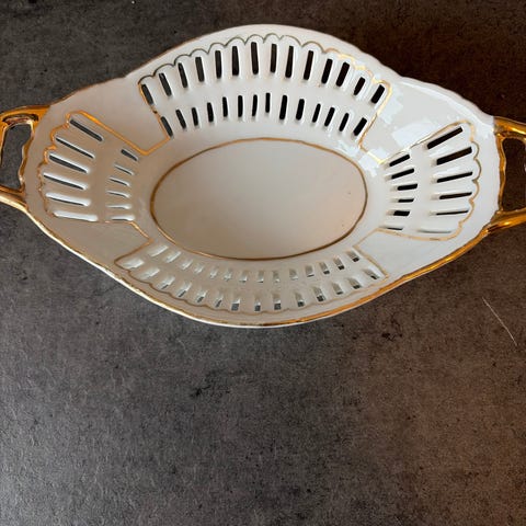 Krystall fat 15 cm. Det har litt bruksmerker, prøvde å få det med på de siste bildene men synes ikke de er så synlig. Selges for 150 kr.
