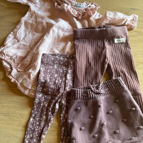 Pent brukte klær til jente i str 74. Pakken består av to kjoler fra H&M, og sett med kjole og tights.