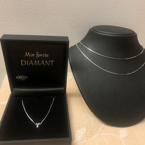 🧵 For å finne størrelsen din, kan du ta en tråd eller snor rundt halsen og klemme der enden møter tråden. Plasser den målte tråden ved siden av en linjal og les av lengden.