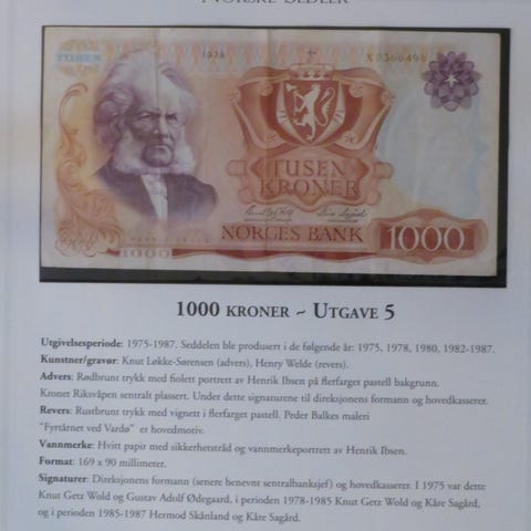Norges Seddel 1000 Kroner Utgave 6 Frimerkesamling