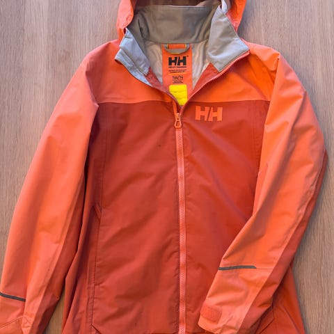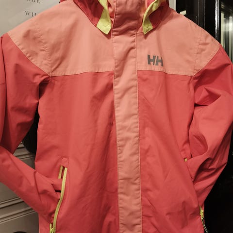 Helly Hansen Allværsjakke str 176. Dette tilsvarer ca en str XS-S i damestørrelse. Brukt av tenåring som nå er 167 cm lang. Jakken passer fremdeles, men selges da den ikke lenger brukes.