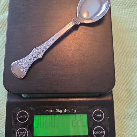 Bestikk/sølvplett/sølv fra dødsbo. Vi kjenner ikke til historikk, renhet, opprinnelse eller tidligere bruk. Stempler og detaljer er godt dokumentert i bildene – kjøper må selv vurdere.I