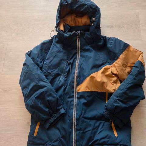 God å varm vinterjakke i blå, i strl 128 med snøstoppere slik at barnet kan leke i snøen uten å få snø under jakken ❄️eneste anmerkning er bilde av, jakken har falmet litt i fargen ellers er den i god stand uten hull.