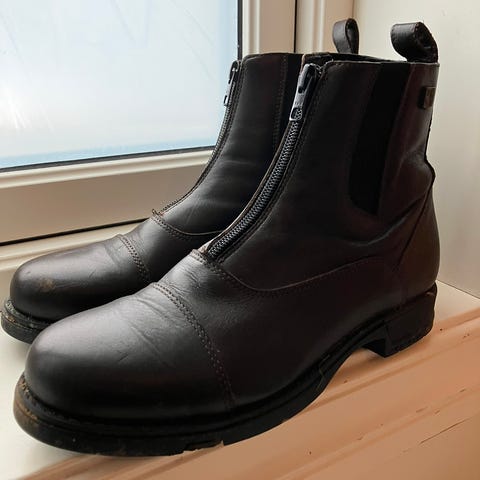 Korte, sorte ridesko til salgs. Lite brukt og sålen er ikke slitt.