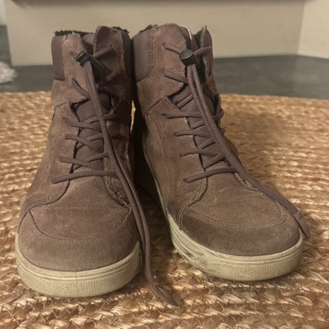 Støvlene str 33 har snøring foran samt glidelås på innsiden for enkel på- og avkledning. Selges for kr 275,-