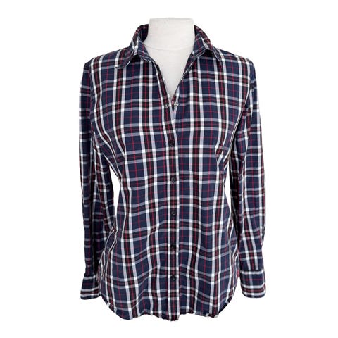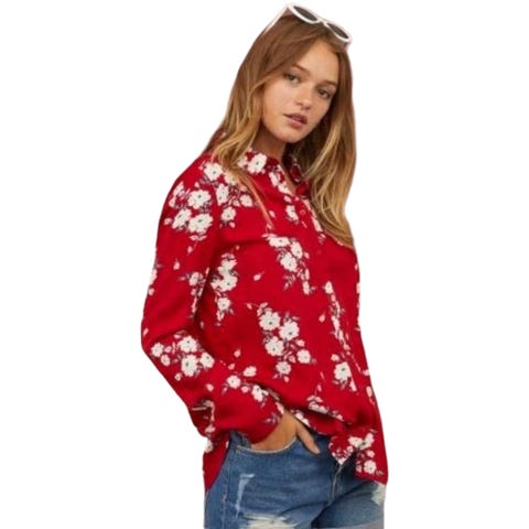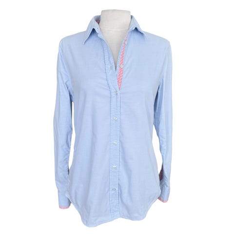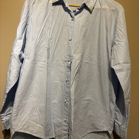 Blusen er pent brukt. Str. 32, men veldig stor. Brystmål fra armhule til armhule er 52 cm, og hel lengde fra skulder og ned er 64 cm. 100% bomull.