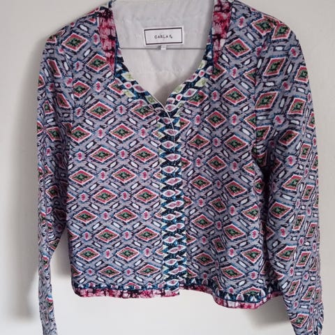 Jakken i str L 40 og buksen i M.