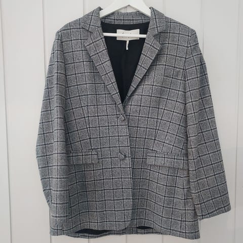 Second Female cropped dressblazer og shorts. Laget i en myk og glatt stoffblanding med fallende kvalitet. Med bredt slag og enkeltknapplukking i linningen. Polstrede skuldre og lange ermer. Enkel passpolert lomme på brystet. Fast linning med beltehemper. Helfôret. Vid og cropped passform.