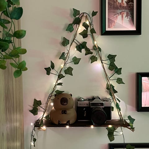Shelfie hylle med lys fra Globen Lighting