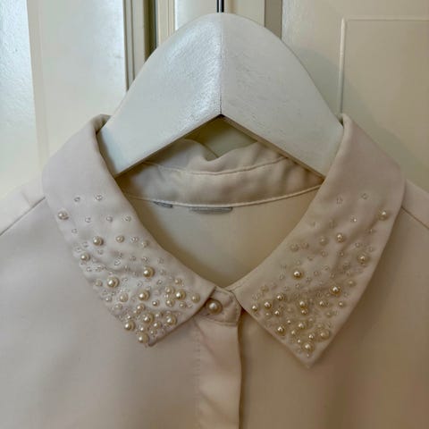 Obs: det er noen løse blonder og den har noen små flekker som knapt synes. Jeg har ikke forsøkt å rense kjolen, så uvisst om de går av eller ikke.